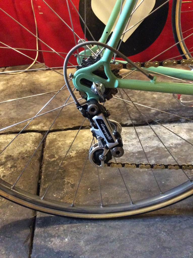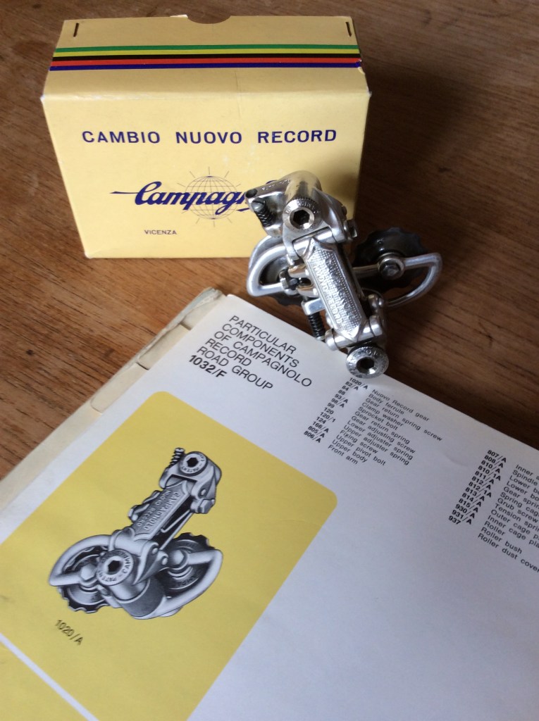 The Nuovo Record derailleur was introduced in 1967 replacing the fairly similar (but chrome plated bronze) Record rear changer. Production continued into the 1980s…