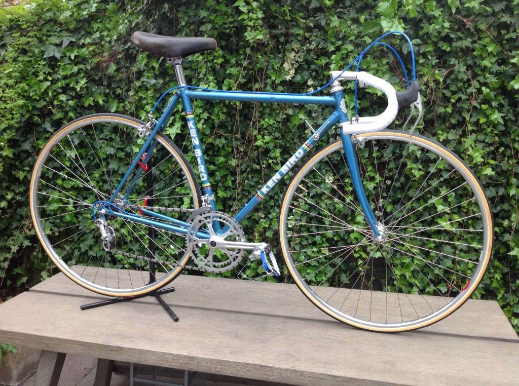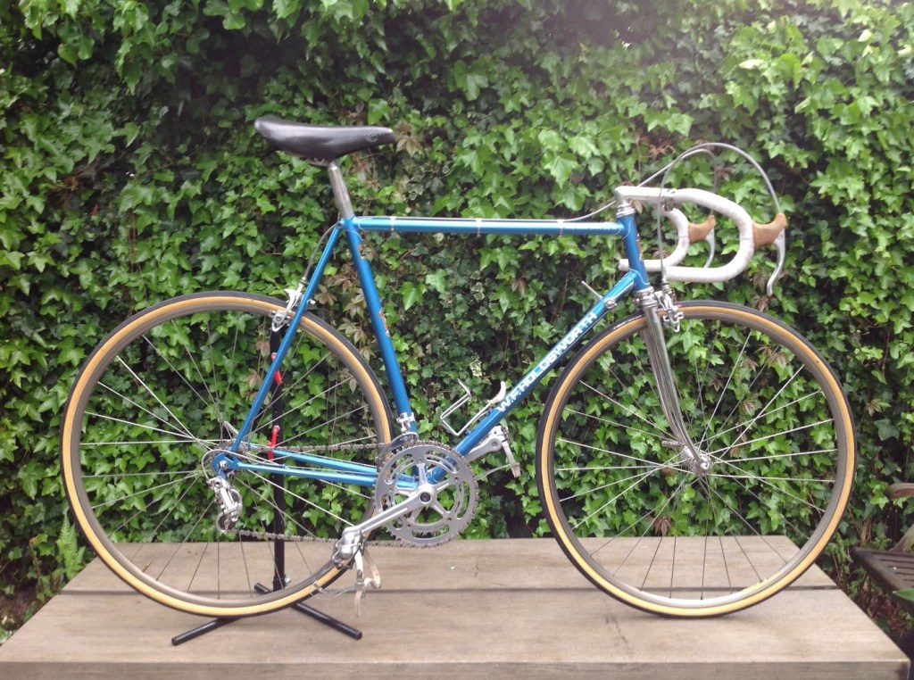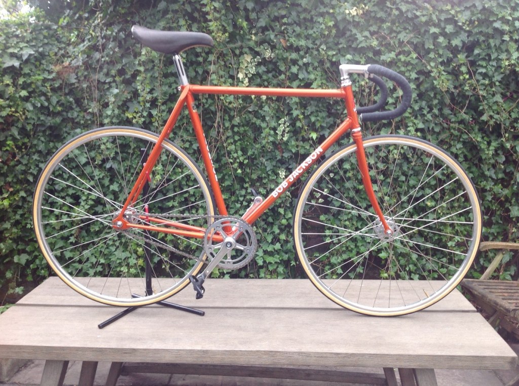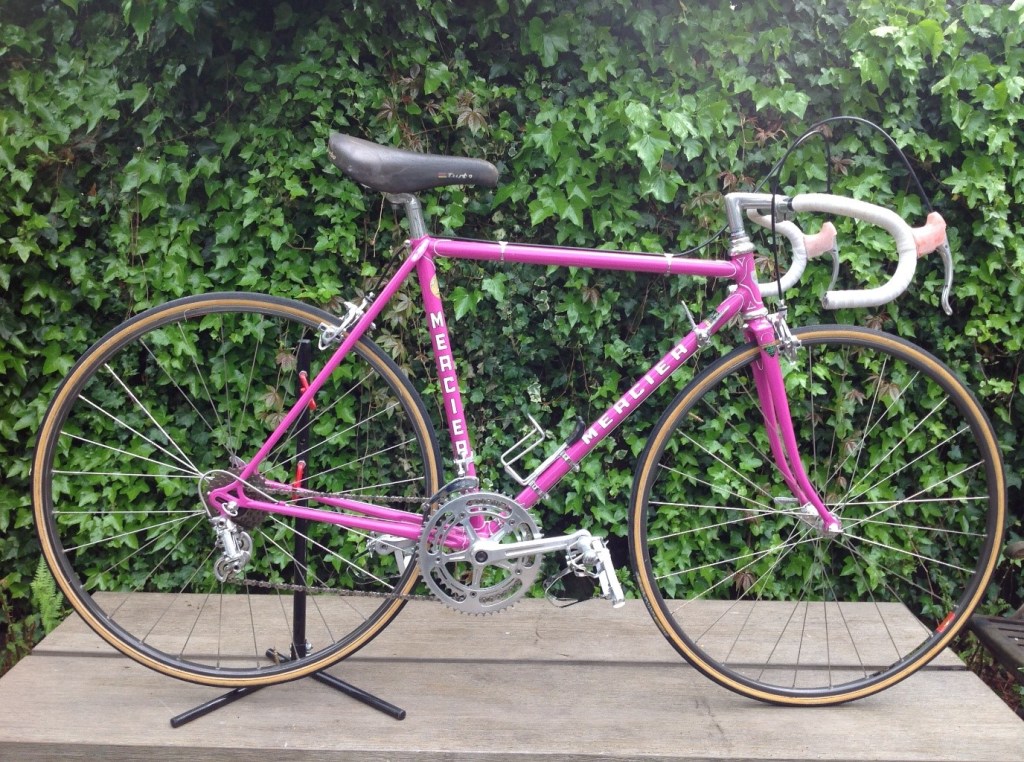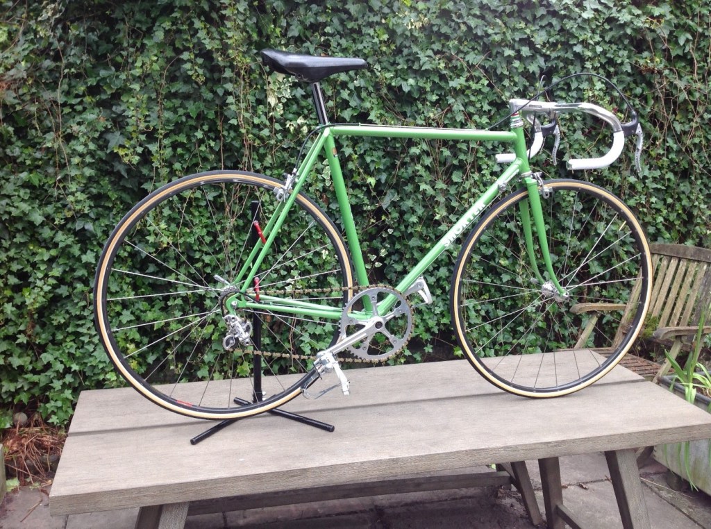 Colnago Nuovo Mexico in Saronni red (Saronni won the world road race championships in 1982 at Goodwood). Second generation Campagnolo Super Record with Colnago pantographed outer chainring, stem and seat pillar. One of his main rivals was Francesco Moser – more about him a few bikes down…Mercian winter or training bike with clubman’s kit of Nuovo Record, Stronglight 49D cranks with TA chainrings and Weinmann 500 brakes. High pressure (that’s what we used to call clinchers) tyres. The eagle eyed will have spotted the lack of gear levers – it does have some now!A time trial frame from Pongo Braithwaite, known for the severe geometry of his frames and disposition to drill a lot of holes – both characteristics of this frame. A “very little Campagnolo” build – TA cranks (with a 58 chainring – Campagnolo only went to 57) Weinmann brakes and Huret Jubilee rear mech (a tester’s favourite).Dave was (and is!) probably best known for his track bikes but he built road and time trial frames too. Another alternative to Campagnolo build – TA and Weinmann again – but a Sun Tour Superbe rear mech which actually worked rather better than the Huret Jubilee (if you were worried about changing gear of course!).Another Colnago Super – this one restored in proper Eddy Merckx “pumpkin” – I am reliably informed by Chris Sidwells that is what he calls the colour! First generation Campagnolo Super Record, Mavic Oro rims and lots of pantograhing. Last ridded in by Florence the excellent Tom Simpson Memorial Ride.Dave was based in Slough and a lot of local riders rode his frames. This is more of his more moderate builds – some of his frames were very short! Stronglight 49D cranks with TA chainrings, Dura Ace mechs, 3TTT seat pillar and Weinmann 500 brakes. And a mad colour scheme!Geoffrey Butler specialised in very tight Six Day geometry and clearances – check out the gap between the front wheel and the down tube. You can’t even fit in 25mm tubulars! Campagnolo equipped with the Record Pista small flange wheels that Darryl Webster rode to multiple national championships. Built to seventies club racer specification – not all Campagnolo…. Stronglight cranks and Universal 68 brakes which were very frequently used – very similar to the bike ridden by a young Phil Bayton. Harry Quinns were also often ridden by many of the great riders – Doug Dailey, Dave Lloyd – from the Kirkby Cycling Club. And Harry Quinns were generally red!Holdsworth Mistral from the early seventies – note the ample fork rake. Commonly used components – TA cranks and chainrings, Mafac brakes with Weinmann levers, “high pressure” tyres rather than tubulars, otherwise Nuovo Record and mudguards for winter training. Classic team coloursKen Bird was well known for his time trial bikes which often had very short wheelbases, close clearances, brazed on brake pivot bolts and lots of holes! This little road bike has all of these… Nuovo Record with Super Record chainrings, Weinmann brakes, 3TTT seat pillar, bars and stem. Unusually for a Ken Bird not white!Frame built by Barry Chick, who also built Shorter frames for Alf Engers and others. Beautifully lightened with cutaway lugs and trademark time trial geometry and clearances. First generation Campagnolo Super Record, Weinmann 500 brakes, 3TTT bars and stem and 28 spoke wheels.Willi Moore was an exceptional rider – bronze in the team pursuit at the 1972 Olympics – this is the only Willi Moore frame we have seen though. It is very similar to a Harry Quinn – Moore did ride Harry Quinns- but it seems Mike Mullett did work with him. Second generation Campagnolo Super Record with Galli brakes.We are big fans of Roger de Vlaeminck (five times Paris Roubaix winner and perhaps the greatest classic rider ever) and this is something of a tribute to him and Patrick Sercu. First generation Super Record with pantographed outer chainring and gear levers.As ridden by Francesco Moser (and Phil Edwards about whom Wiggins wrote a chapter in “Icons” – well worth a read). In original paint with a mix of second generation Super Record and Nuovo Record and proper original Benotto bar tape. some essential watching – A Sunday in Hell – where you see Roger de Vlaeminck also!Doug’s own track bike – ridden at Manchester Velodrome (quite slowly). 1978 frame with Campagnolo but modern cranks – nice CNC Campagnolo copy. The short stem is in deference to Doug’s increased girth. Apologies for the modern pedals….
